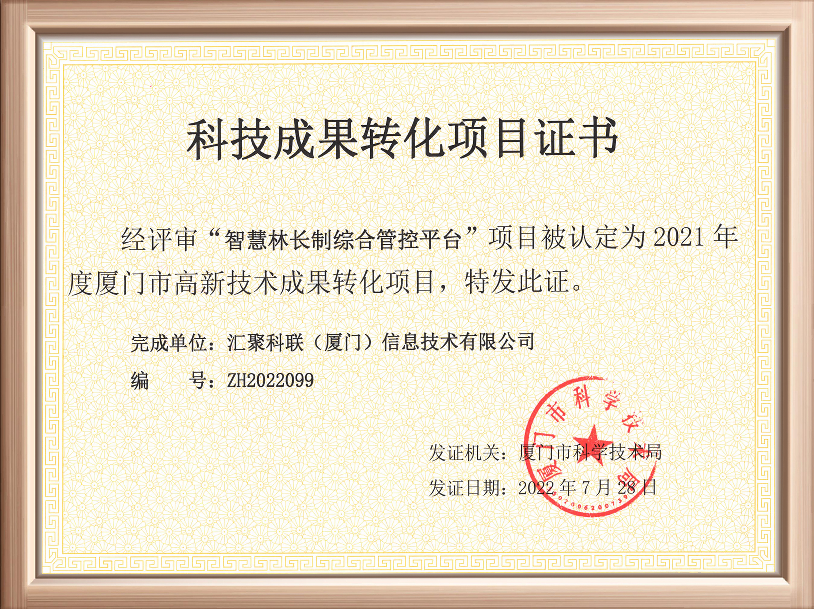 匯聚科聯(lián)(廈門)信息技術有限公司創(chuàng)立于2016年,總部位于廈門市火炬高新技術產業(yè)園,公司是國家級高新技術企業(yè)、福建省“瞪羚”企業(yè)、廈門市高新技術企業(yè)、廈門市重點軟件企業(yè)、中國林學會計算機應用分會理事單位、中國水利企業(yè)協(xié)會會員單位。